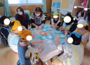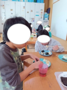 最後は午後からのお餅つくりです。プレイルームでいっぱい遊んで戻ってきたお友達は、もち米が蒸されるおいしそうな匂いに、よだれがこぼれそうになったかな🤤(笑)お餅が配られると、自分の分のお餅を上手に丸めて、きな粉やみたらし、海苔を巻いていただきました😋💛