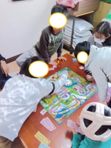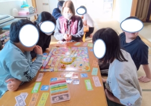 高学年グループは、初チャレンジの「おいしい人生ゲーム」が楽しくなり、時間を押して自由時間をカットして、やり続けました(笑)