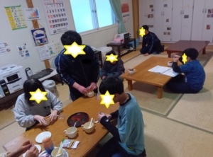 からし種に戻り温かいものを飲んで身体を温めた後は勉強タイムです。先週木曜日の話し合いの結果、今週2倍行う代わりに勉強タイムなしにしました。「先週と同じ企画・外遊びの後に勉強もな~」とスタッフは迷ってましたが、いつも遊びたい男子が「今週はプリント2倍だよ」と言い勉強開始。先週休んだ子が「俺も?」と疑義を発動。今度は別なお友達が「リーダーさんが、先週、休んでる子も2倍って言ったよ」