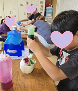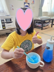 いちごシロップをかけていたお友達は口が真っ赤になってビックリ!!