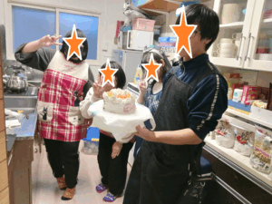 最後にみんなでケーキを食べることになりましたが、なんと今日が誕生日の子がいました。みんなでハッピーバースデーの合唱しました。