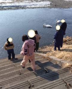 行ったときには見当たらなかった白鳥さんたちが、私たちの気配を感じたのかどこからか飛んで来て、かわいい姿を見せてくれました💛