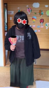 前日「花にするなら、茎に葉っぱつけたらかわいいかも」という意見をいただき、茎の部分に葉っぱをつけることにしました。下準備が増えて大変な中、昨日「手伝う」と言い葉っぱ作りをやってくれるお友達がいました。そんな協力をもらい、準備に間に合いました。
