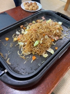 お友達2人がそれぞれ「たこやき担当」と「焼きそば担当」になって頑張って作業をしました🔪