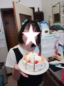 一足早く夏休みになったメンバーが久しぶりに参加というサプライズもありました。せっかくなので、前回の誕生会であまった材料と、スタッフからのフルーツの寄付があったので有志でケーキを作ることにしました。